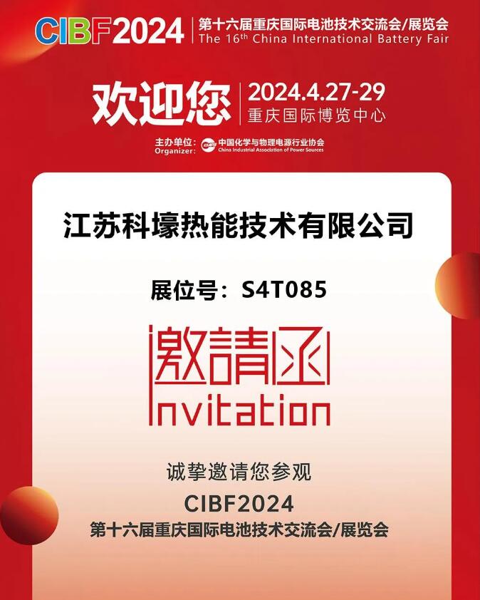 江苏科壕热能技术有限公司诚挚邀请您参观CIBF2024第十六届重庆国际电池技术交流会/展览会